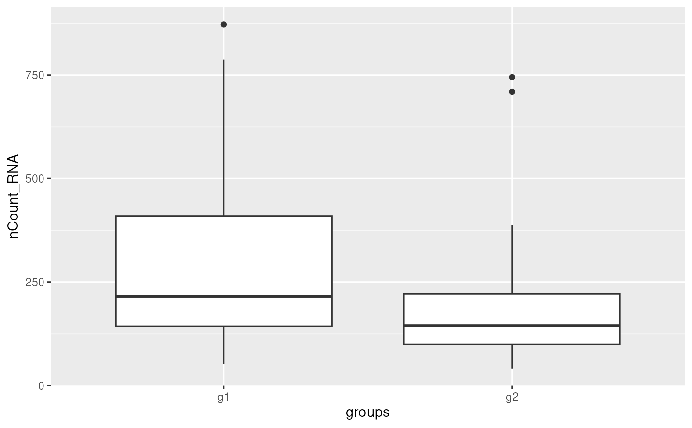 ggplot(aes(groups, nCount_RNA)) +